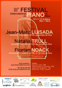Nous y sommes presque! En effet, dans quatre semaines nous aurons le plaisir de vous retrouver pour la troisième édition du Festival international de piano devenu désormais une institution non seulement à Mus mais également bien au-delà des murs de notre village.