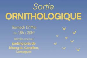 J’ai le plaisir de vous annoncer que nous avons fixé la date de la sortie ornithologique à l’étang de l’Or à Lansargues au samedi 17 mai à 18h